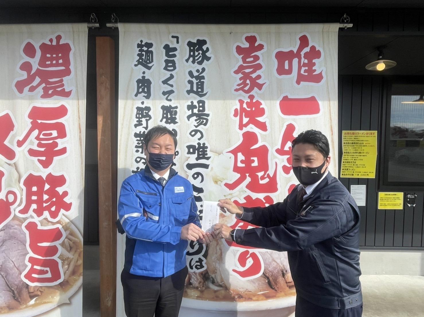 1月6日(金)に1月度ラーメン例会「豚初めの儀」が厳粛に取り行われました。今回は特別ゲストとして新田理事長とラーメン素人の奥村専務にもご参加いただきました。奥村専務は食券を購入して早々に、自らちぎると言う素人丸出しのスタートとなりました。食券を回収に来たお店員からも「は?」と言うイラ立ちが伝わってきました。そんな中、もう一つの事件が起こりました。店員がいくら確認しても、食券が1枚足りません。ここはキャプテンである私の出番、奥村専務が怪しいと思い疑いの目を向ける中、そっと自分の上着のポケットに手を入れると、、「小豚」の食券が、、奥村専務その節は大変申し訳ありませんでした。