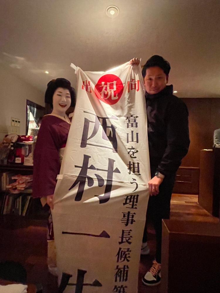 行くと決めましたけど実際内容は全く分かりませんし、副議長から事前案内来ないしどうゆうことを行っているかも全く分かりません。しかし、いざ新年会に参加させていただくと越の国富山ブロック建設クラブの先輩方、現役の皆さまがあたたかく迎えてくださいました。開会すると部会長あいさつ、来賓あいさつ、シニア会長あいさつ、JCI京都理事長あいさつ、賛助企業のあいさつがあり、乾杯、懇親会、シニアのよくわからない余興などなど訳が分からないまま、〆のあいさつとなりました。その中で今年は25周年とゆうことで、キャラバンなどのおめでたい設えに参加できたことを嬉しく思います。そして二次会…正直自分が一番楽しかったと断言できます。三次会については行った方々との秘密♡とゆうことで…皆さま本当にありがとうございました。今年から井上暁をお願いいたします。