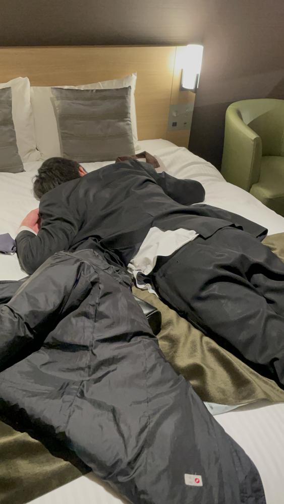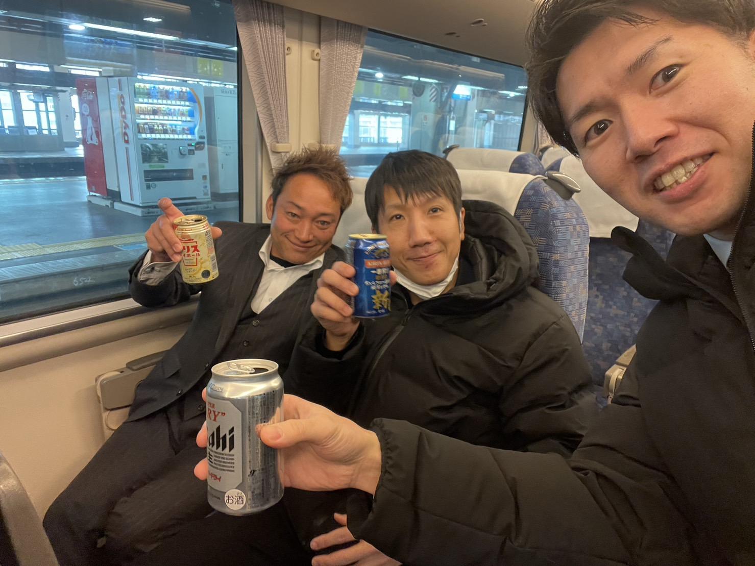 当委員会メンバーの多くが前乗りで京都入りする中、私は土曜日に向かうことになりました。同じく土曜日組のビル(中田)さんと富山駅で待ち合わせし、お酒を買い込んでいざ出発!ビルさんとガッツリお話するのは初めてでしたが、ビルさんの明るい性格にも助けられ、あっという間に距離は縮まり、ある時目覚めると檻の中にいたという謎エピソードが終わる頃に金沢駅に到着。マッチ(西村副委員長)さんと合流し、京都駅に着くまで3人の酒盛りは続きました。