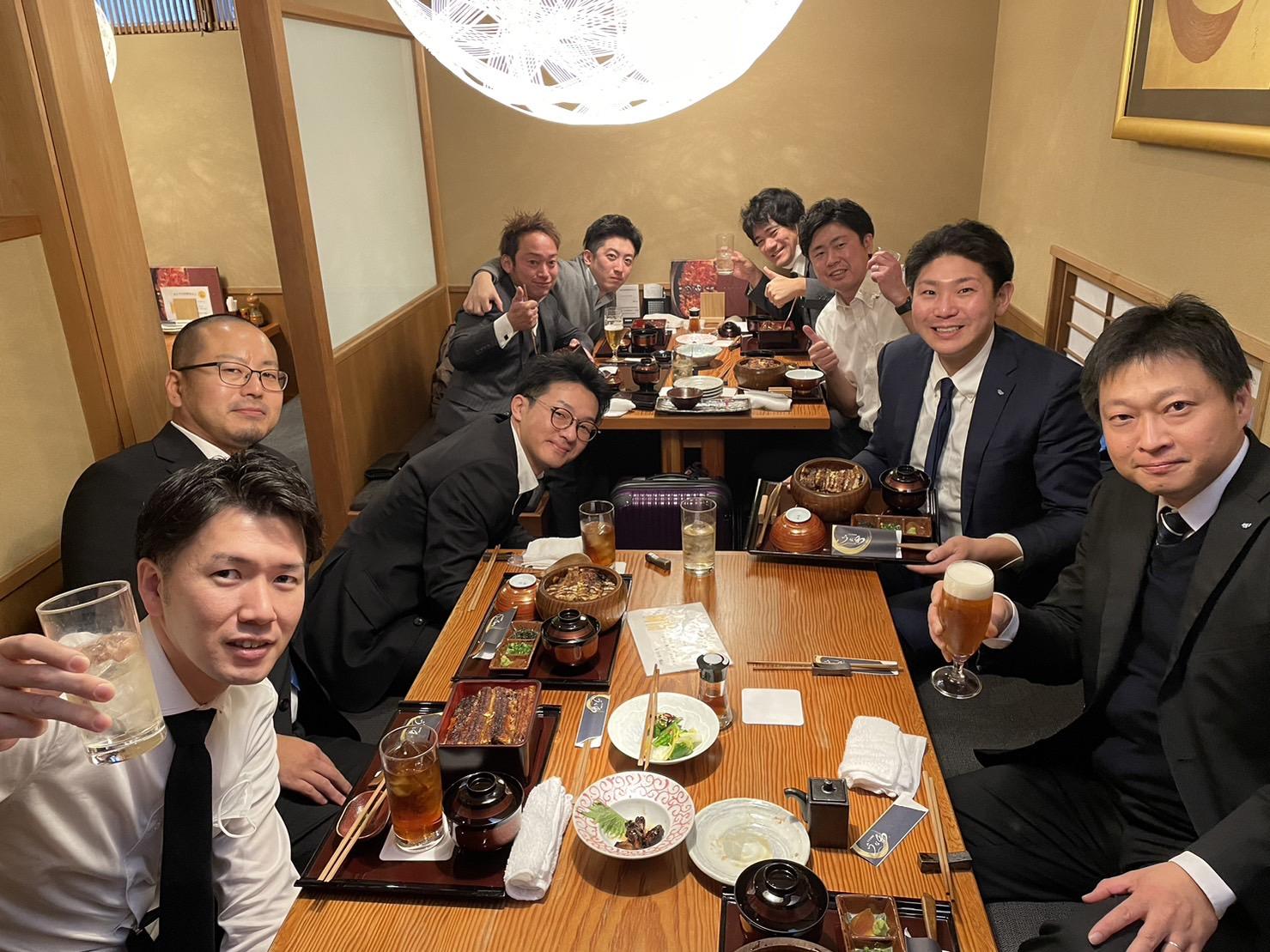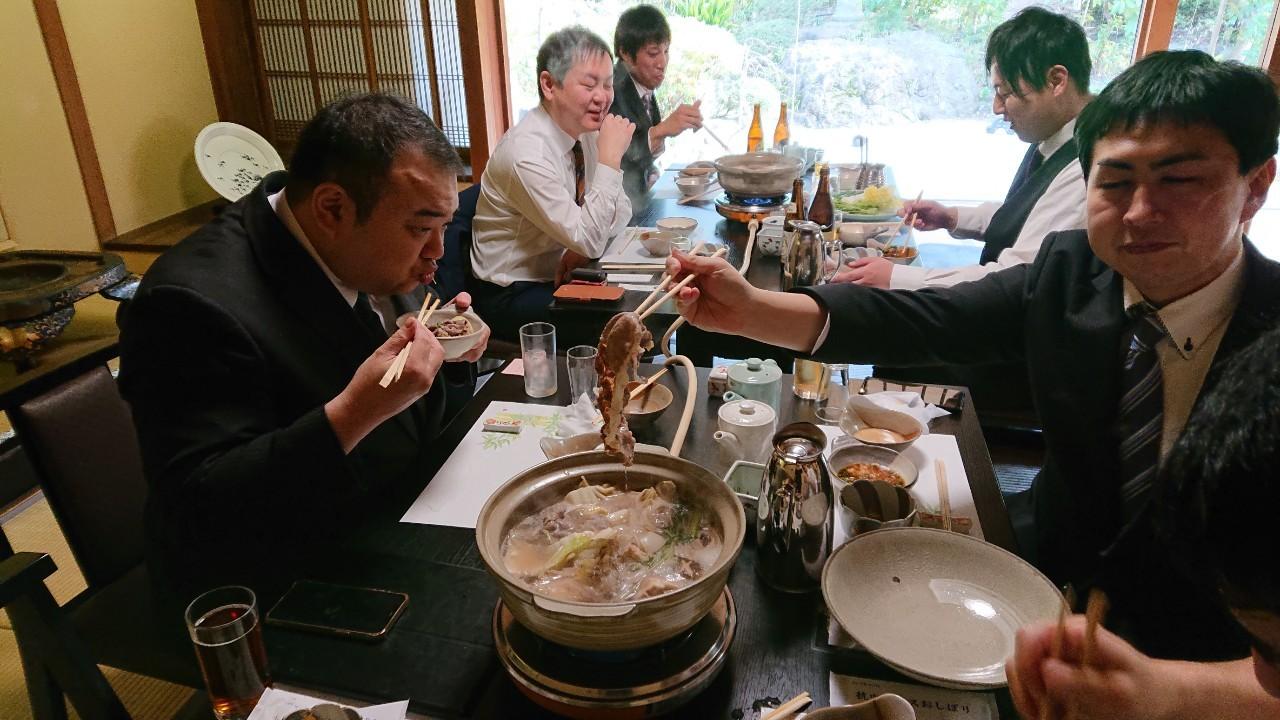 新年式典終了後は、『京 うな和 本店』で委員会ランチ!このお店を選んだ目的は、まさしく「ぎーうなシバいて超回復」であり、京都会議の疲れを鰻で吹き飛ばそう!ということでした。大井山担当副理事長にもご参加いただき、美味しい鰻と思い出話を肴にお酒も進み、楽しい時間を過ごすことができました。