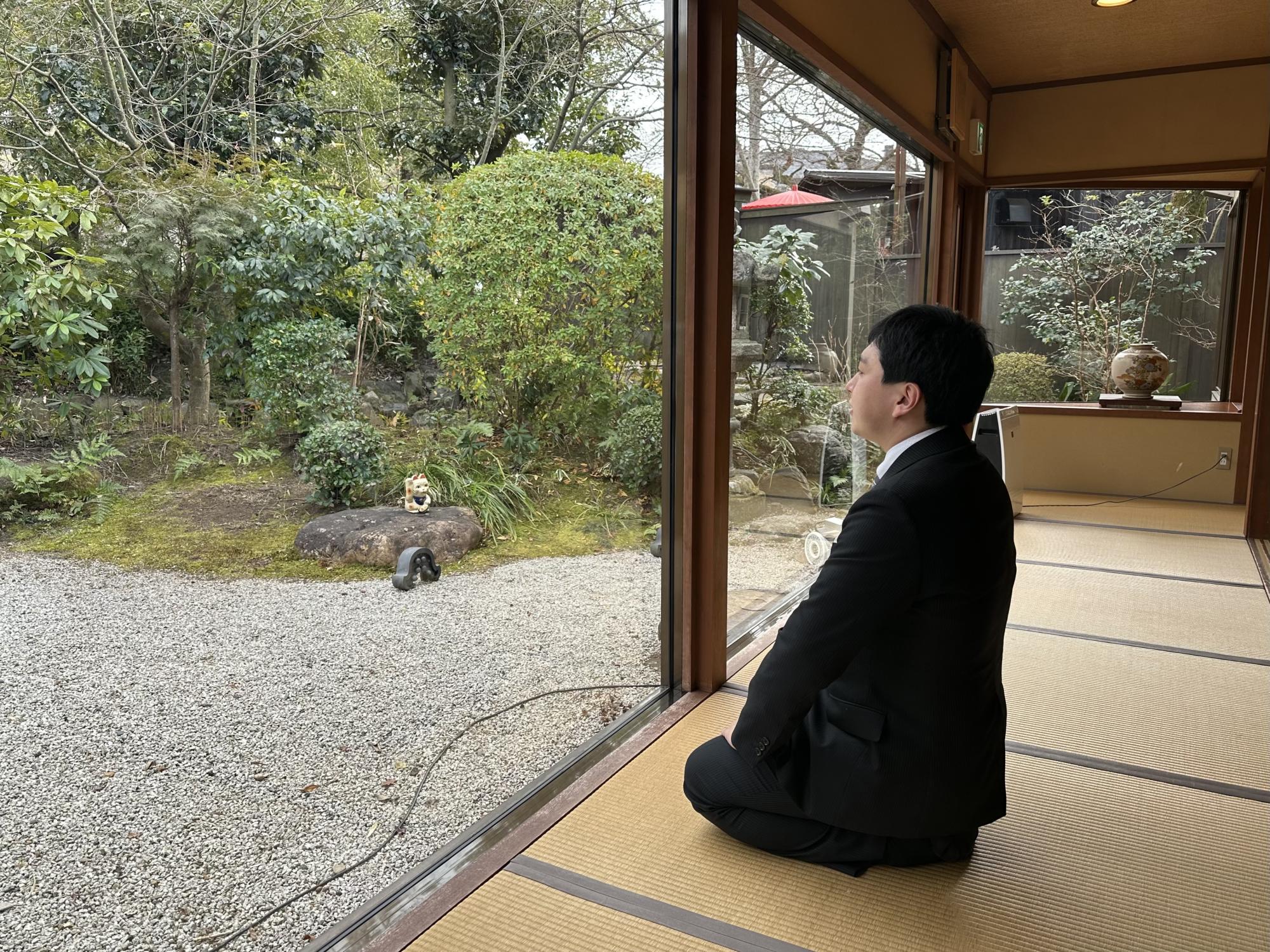 担いとしては、そんなところですがもちろんそれだけではなく、京都の夜・食事も楽しませていただきました。金曜日の夜は板川委員長と先斗町通りですき焼きを食べたあと、視察をしながらいい感じのBARを探して練り歩き。土曜日昼は塚本副委員長も合流し錦市場で食べ歩き、夜の私は早々に酔い潰れてしまったので帰りましたが、委員会メンバーは祇園を楽しんだようです。日曜日は式典参加後、円山公園の鍋料理屋にて理事長・専務理事と食事会を行いました。素敵な庭園があり、しばらく眺めていたところを理事長に盗撮されたりもしました。