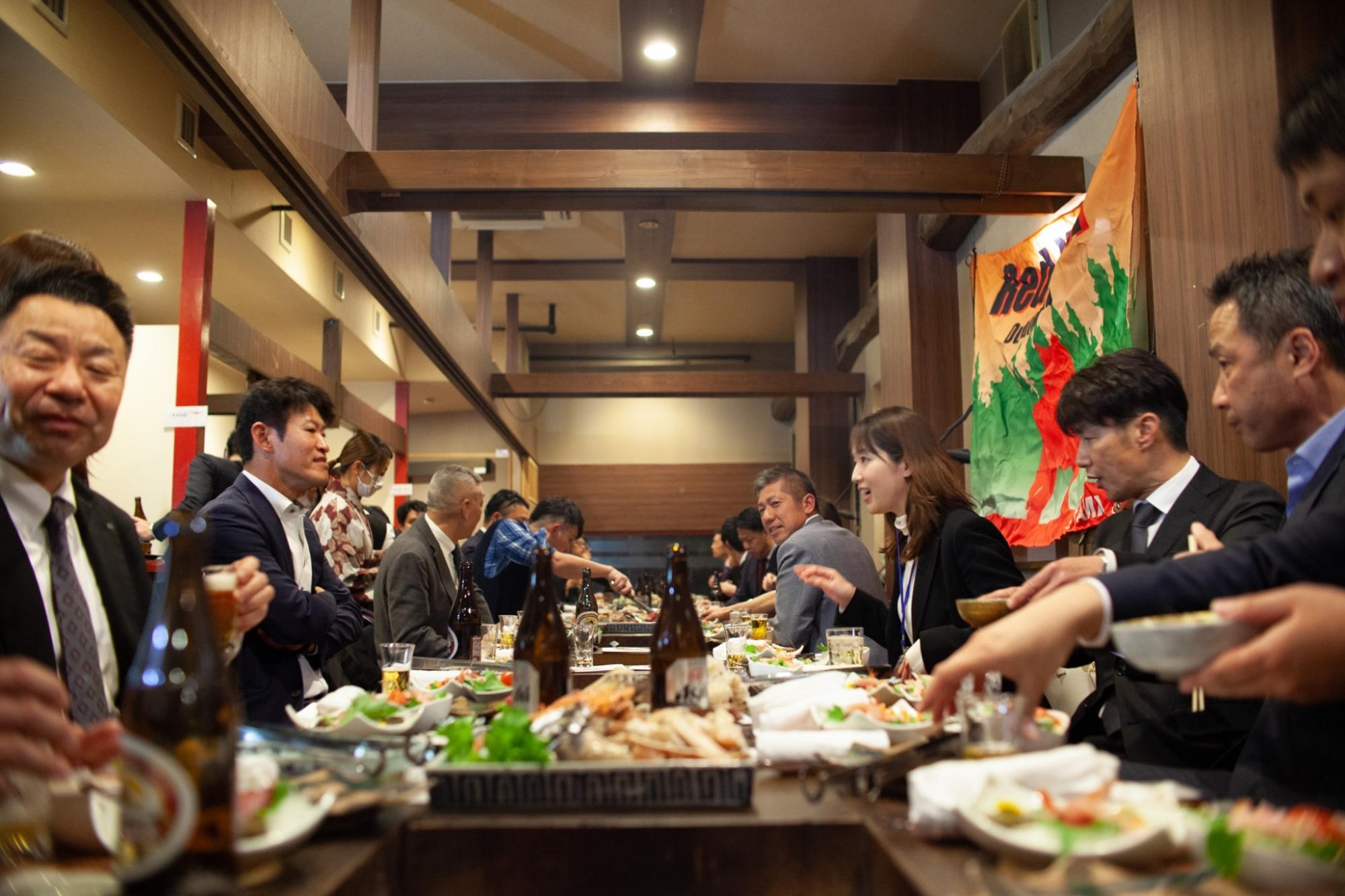そして全体会議を終えた後、アカデミー委員会では富山駅前の飲食店で懇親会を行いました。富山ブロック協議会へ出向していらっしゃる、松原委員長、高平幹事、いくつもの委員会を経てアカデミー委員を務めてらっしゃる大澤広報幹事、小山運営幹事、2023年新入会員のウォッカ(平君)、ラブ(中川君)、プーさん(大久保君)、私KPの4名でご一緒させていただきました。