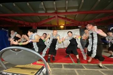 そして、何よりもアカデミースタッフの皆さまに助けられ、遅くまで付き添っていただきまして、本当に感謝しております。本番は風が強く、私自身は飲み物を担当しておりましたが、まともに提供できない中、現役会員の皆さまに温かい言葉をかけて頂き、また、余興本番では、現役会員の皆さまの相当なまでの熱い反応を頂き、かなりのやりがいを感じさせていただきました。