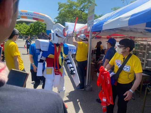 途中面白い出来事があったので書きます。私が走っていると沿道から「ガンダム頑張れ~」とやたら聞こえてきたのですが、私の知らない方々の声援だったので首を傾げていると、後方からガンダムのコスプレをしたランナーが来て、私を抜かして行きました。こんな偶然があるのかと思いましたが、JCI富山のメンバーが大爆笑してくれていたので良かったです。