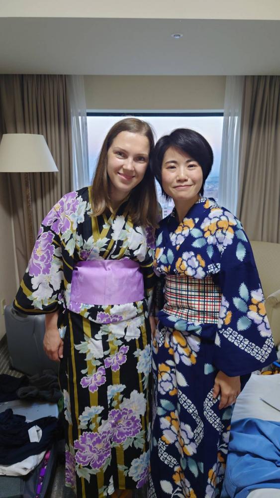 バディのサンドラと浴衣を着てツーショット