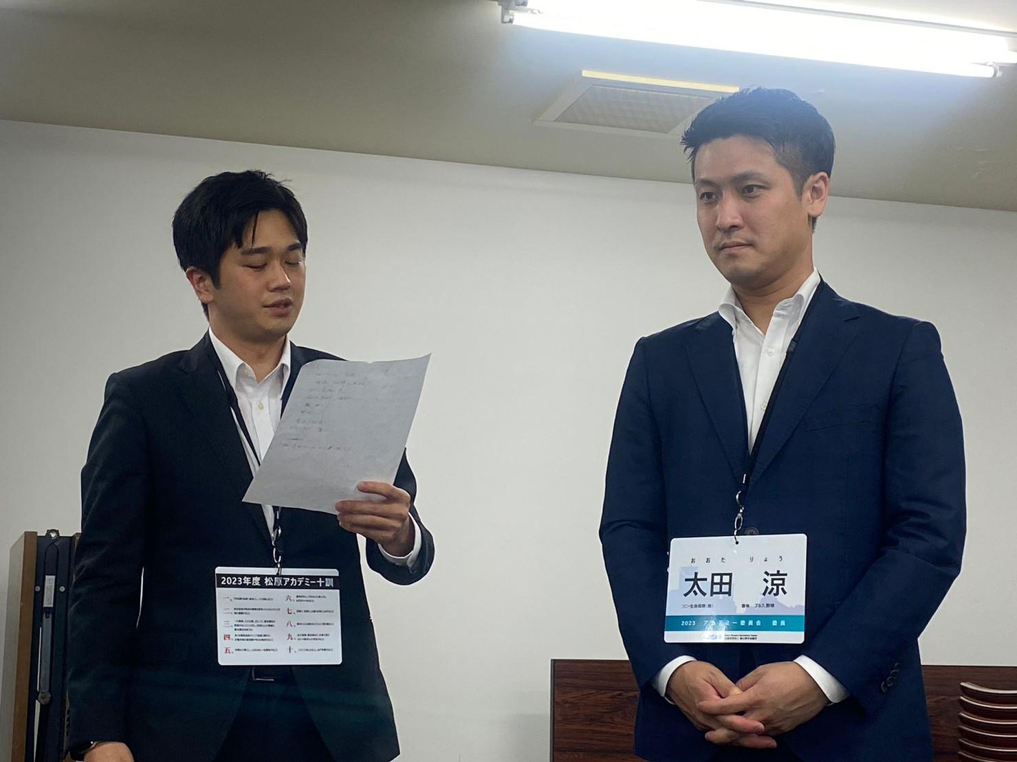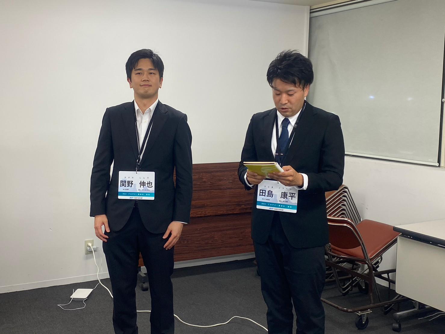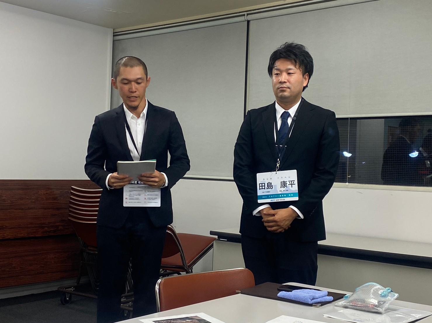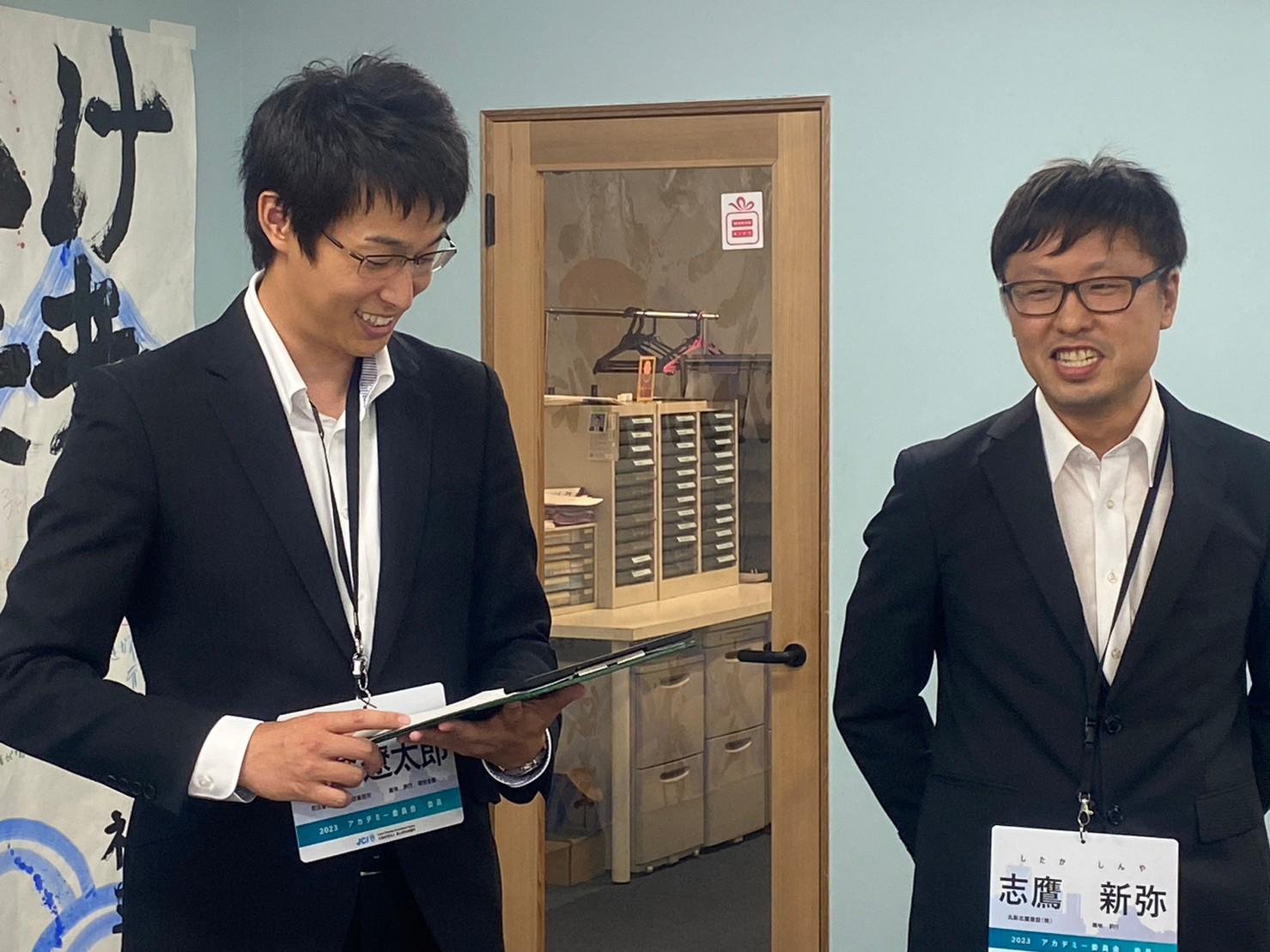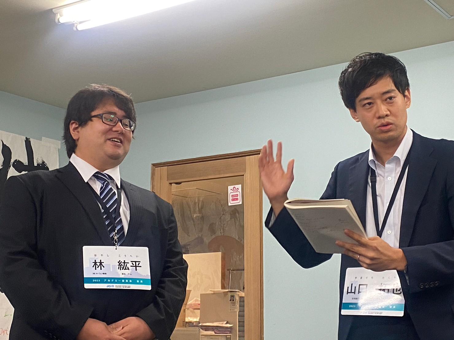 そして懇親会では、親睦を深めるとともにJCライフを送るうえで重要になるあだ名の最終決定が行われました。前期アカデミーではこのようなことは行わなかったのですが、松原委員長の許可(本人もしっくりこなかった・・・)もいただきここでは3名が改名に成功することとなりました。また懇親会の終盤では後期新入会員にとって初ミッションとなる1分間スピーチを7月度例会で行うことを発表しました。このメルマガが掲載される頃には終了しておりますが、皆さま後期新入会員の顔と名前を憶えていただけたでしょうか?1分間で名前、あだ名、会社内容、抱負を語ってもらいましたが、新入会員の皆さまは手応えはあったでしょうか??時間制限のある中で端的に話をして自身を印象付ける必要があるこのミッションは私たち現役、そしてシニアの先輩方も行ってきた伝統的なミッションです。今後も何かしらミッションが与えられると思いますが何事にも全力で取り組んでいただきたいです。