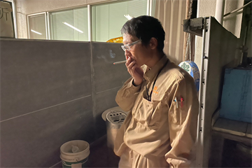 撤収完了後、放心状態でタバコをくゆらす中曽根実行委員長