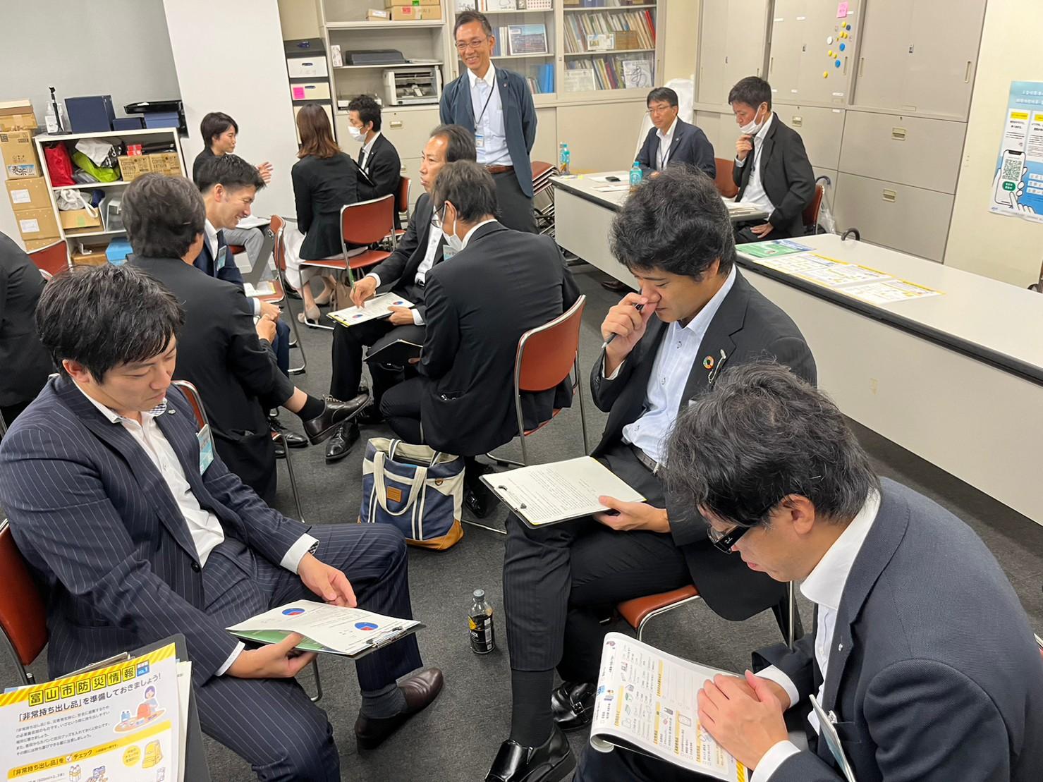 グループディスカッションでは、「職場や家庭で防災対策していますか?」というテーマで、取り組んでいる対策を各グループでまとめ、発表していきました。多くの取り組みがある中で、防災用品や食料、水の備蓄(防災バッグ)がやはり1番多く、ハザードマップの確認、避難訓練や防災の勉強会、事業継続計画(BCP)の策定などもありました。また、タクローさん(川上拓郎)のお子さまの使わなくなったランドセルを、防災バッグ代わりにして、カップラーメンを備蓄している取り組みが、とても印象深く、これは是非子どもが小学校を卒業した後に実践したいです。短い時間でしたが、多くの気づきや学びがあったオープン委員会でした。富山市防災危機管理課の皆さま、オープン委員会へ参加いただいた他委員会の皆さま、ありがとうございました。