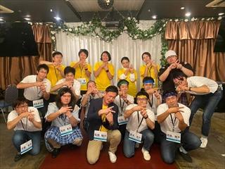 次に余興ですが、色んな案を出し、どんなおもてなしをすることが、現役会員の皆さまを満足させることか考え抜いた結果、一体感を演出でき、会場を巻き込むことができるかもしれない「オタ芸」を取り入れようという話にいきつきました。本物のオタクである同期のイーグル(志鷹君)を中心に振り付けの練習をスムーズに進めていけそうだと思ったのですが、イーグル(志鷹君)は「踊り」ではなく、「雄叫び」専門のオタクだということが発覚し、全員で選曲した動画や音楽を夜通しで何度も繰り返し確認したことは今でも鮮明に思い出せます。踊りの振り付けを覚え、みんなで合わせてみると、ポーズの位置がバラバラであったり、少しテンポがずれていたりと、中々上手くいかないこともありましたが、アカデミースタッフの方々に助言をいただきながら、夜中まで話し合い、踊り狂って、何とか本番当日を迎えるこができました。当日は、みんな緊張していたこともあり、練習通りパフォーマンスが出来なかったメンバーもいたかもしれませんが、現役会員の皆さまが想定以上に余興の場を盛り上げていただいたことで、会場のボルテージが最高潮に達したと思っています。