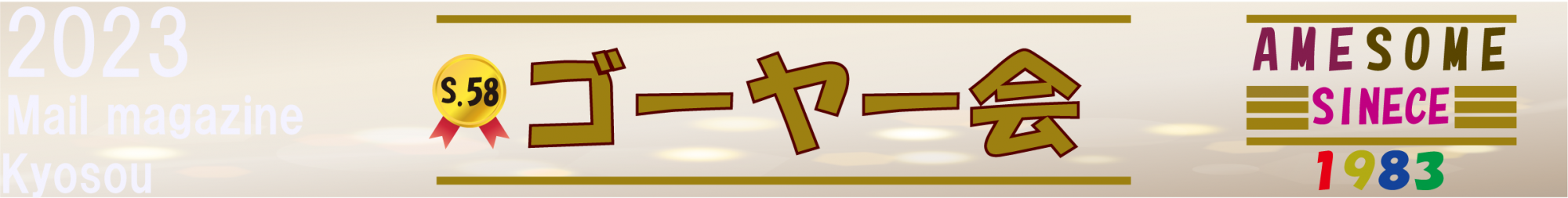 またこの卒業同期会の名称投票も行い、58年生まれということで「ゴーヤー会」となりました。覚えやすく、シンプルイズベストな選択。個人的には「東京ディズニーランドと同い年の会」という名前が素敵でした。夢の国ディズニーのように、次世代に向けて夢を与えていけるようなゴーヤー会メンバーでありましょうとカッコつけた中締めの挨拶で幕が閉じられました。