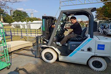 設営時、誰よりもキビキビな動きを見せる大井山実行委員長と力持ちのプーさん