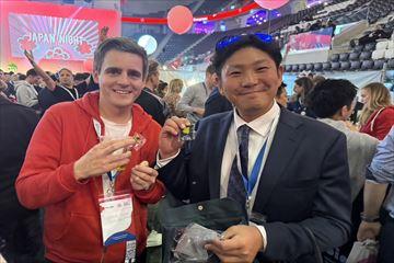 また、会場内では各地青年会議所、地区・ブロック協議会から約50のブースが出展。各地の料理や地酒、名産品の提供、書道などの体験など多彩な内容となり、参加者を楽しませました。麻生会頭も各ブースを回り、全国のメンバーと交流を深めました。また、交流スペースでは、日本の食文化発信コーナーとして各地のお酒や豚汁がふるまわれ、漢字の模写や輪投げコーナーも設けられ、各国の参加者が日本文化に触れました。参加していただいたメンバーが自然と海外メンバーと交流できる設えとなっておりました。北陸信越地区は富山青年会議所以外、金沢、福井、長野、新潟全て世界会議のブースに出店しており、私的には少しん-やらかしたな出店するべきだったかなと少し反省しております。