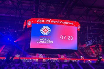 大会の最後を飾る晩餐会クロージングセレモニーGALAが開催され、麻生会頭、中島直前会頭はじめ多くのJCI日本メンバーが出席しました。最後のファンクションであり、各国の会頭はじめ大勢のJCIメンバーが参加懇親を深める場です。 大会実行委員長の挨拶で開会し、今大会の振り返り映像が流れました。その後、JCIスイス会頭、ビクター・オマーソンJCI会頭、JCI常任副会頭が挨拶。世界会議の引き継ぎも行われ2023年度開催国であるJCIスイスから2024年度開催国であるJCIチュニジアにバトンが渡されました
