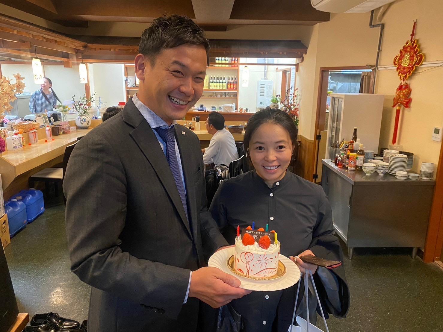委員会後の懇親会は芙蓉餃子房にて開催されました。おめでたいことに今月が誕生月となる委員会メンバーが4名!坂本副委員長、牧野幹事、小山幹事、トッポ(山口君)!をみんなでお祝いをしました。そしてさらにさらにおめでたいことに、この懇親会から2日後の11月17日、牧野幹事が元気な男の子をご出産されました!!(パンパカパーン!!)なんと母子ともに同じ誕生日!さらに小山幹事まで同じ誕生日!おめでたいことずくめのアカデミー委員会でした。