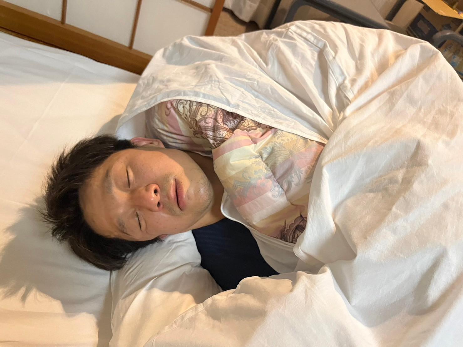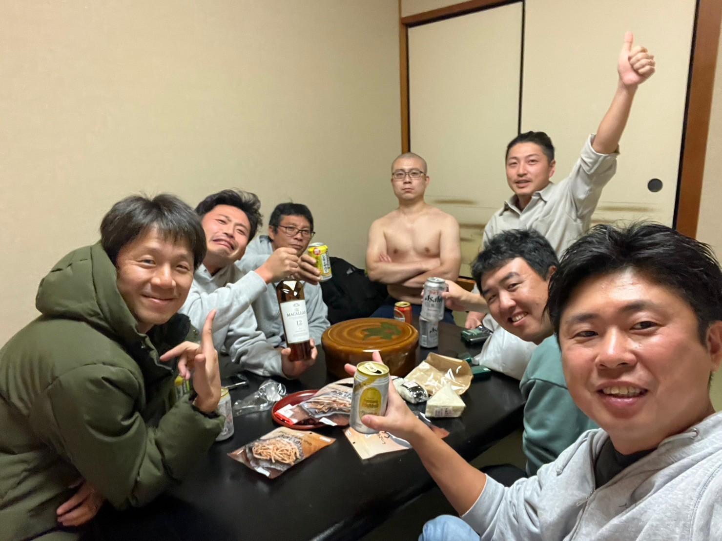 深夜になったため二次会もお開きとなり皆が寝ようとしたころ、おじさんが起床し再び飲み始めました。なんだよこの人!と思いましたが本当に楽しそうで何よりでした。同部屋のコぺさん、よっちゃん、ヘイヘイ(島田 裕平君)は何時までお付き合いしたのでしょうか・・・。