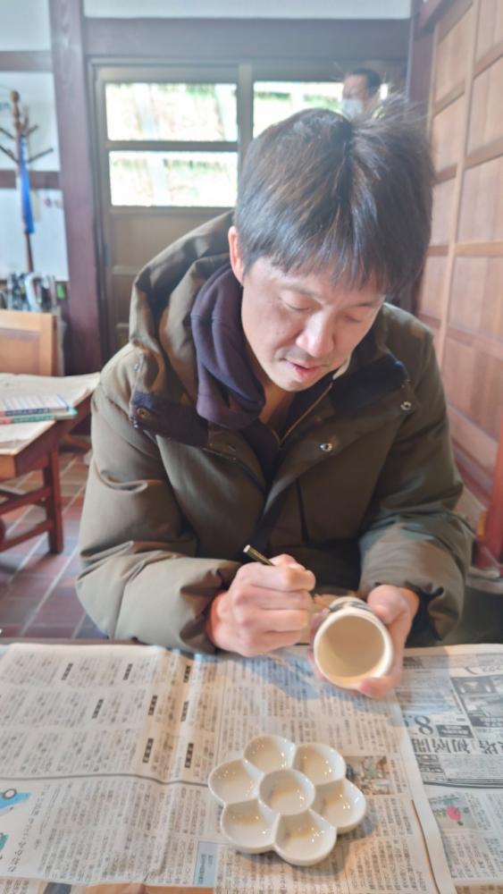 9人が真剣に湯呑み絵付けと向き合う時間は静かで、ストーブの電気音だけが息をしているようでした。